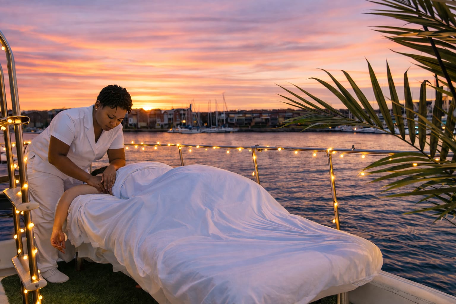 From bespoke massage therapy on deck to quiet moments of reflection, intimate milestone celebration cruises, and curated time floating dockside with those closest to you, every detail aboard our vessels is thoughtfully considered and designed to elevate you and your time on the water.